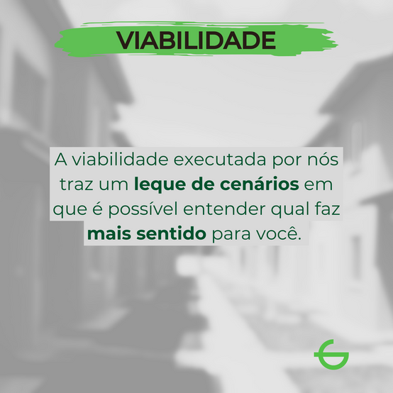 A indecisão de qual caminho a seguir é algo que resolvemos nessa etapa da viabilidade. Entregamos nela o valor potencial do seu lote, quais os empreendimentos podem ser executados e quais são os mais rentáveis. Com as linguagens gráfica e financeira os nossos clientes conseguem concluir qual caminho seguir.